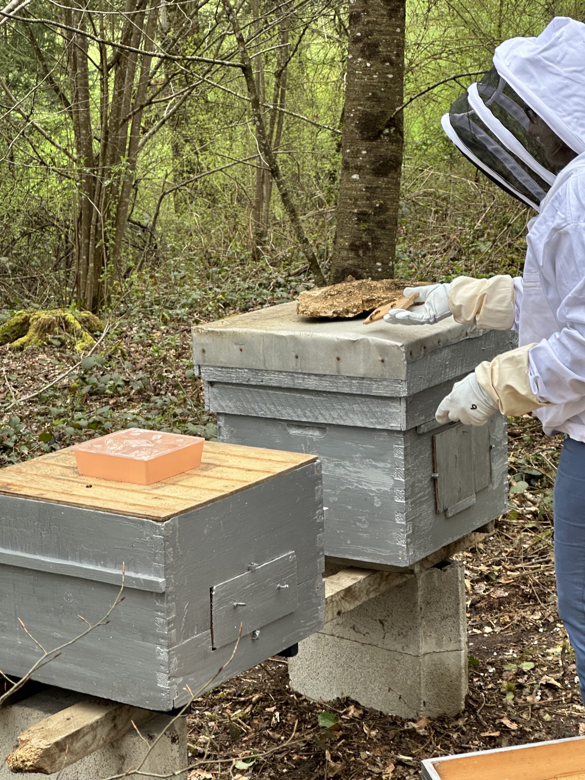 Une ruche vitrée avec QR Codes rappelant nos animations guide les visiteurs .