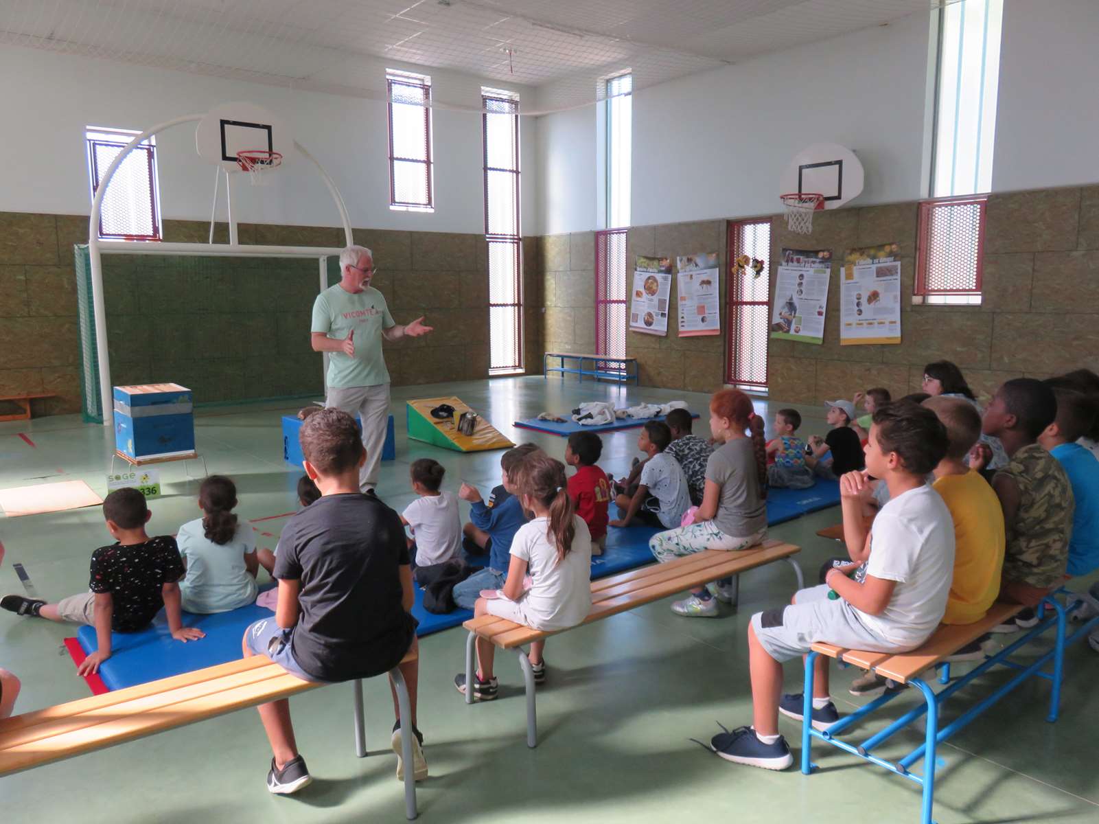 2 groupes de 25 enfants de 4 à 6 ans et de 7 à 10 sont venus découvrir avec Jean-Pierre et Annie, le monde des abeilles.